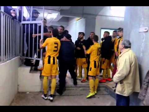 μάλιστα απόπειρα ξυλοδαρμού! Ωστόσο βλέποντας το σχετικό video δημιουργούνται κάποιες απορίες. Κατ΄αρχάς πως είναι δυνατόν να κυκλοφορούν τόσοι "φίλαθλοι" εντός του αγωνιστικού χώρου, χωρίς να απομακρύνονται, από την αστυνομία, από την πόρτα εισόδου προς τα αποδυτήρια; Από την άλλη είναι δυνατόν επαγγελματίες παίκτες του Άρη να συνομιλούν με διάφορους, όσο κι αν έιχαν προκληθεί και μάλιστα χωρίς να παρεμβαίνει κάποιος από την διοίκηση των κιτρίνων προκειμένου να τους...συμμαζέψει και να τους προστατέψει; Εύλογες νομίζω απορίες, αλλά είπαμε Ελλάδα και πάλι Ελλάδα!